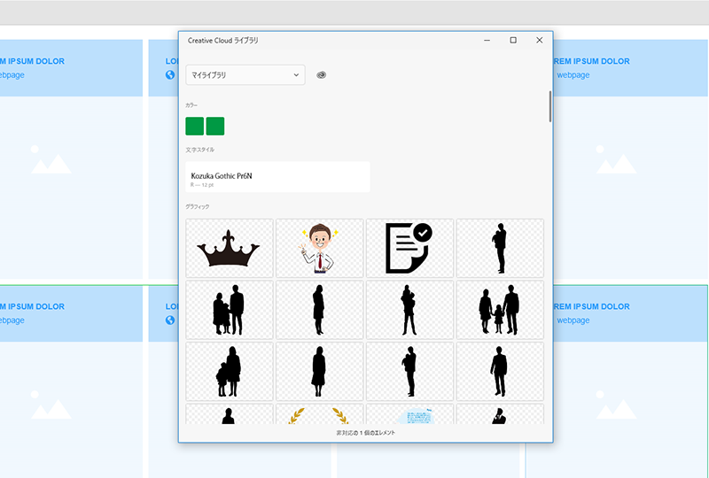 保存したレイヤーは、XDの画面から「ファイル」>「CCライブラリを開く」で呼び出すことができ、カンバスへドラッグ&ドロップするだけで配置が完了します。